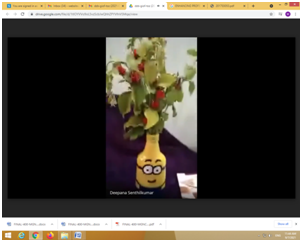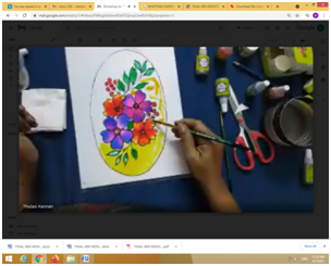 On 24.06.2021 to 30.06.2021 the session was taken over by Ms.Thulasi Kannan, Oviya Kalai Nanmani, Fevicryl certified specialist, Ajanda art & Crafts, Madurai. She did all of this and showed up Sketch Coloring, Jewellary Making, Pot Painting, Paper works, Canvas painting , clay works.