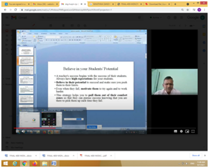 On 15.02.2021, the session was taken over by Dr.K.Anandhan, Former Head & Professor, Department of Education, Bharathidasan University, Tiruchirappalli. He spoke on the topic Discovering Ones Potential as a Teacher.