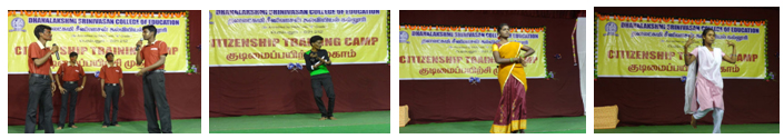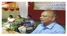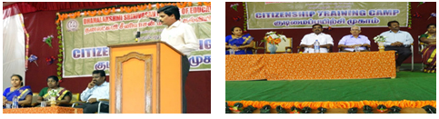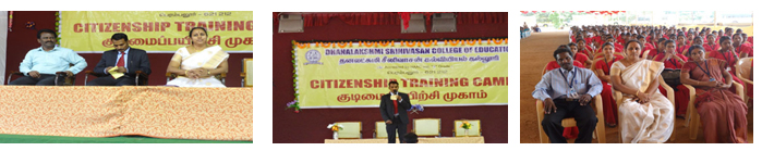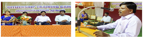 CITIZENSHIP CAMP – 02.02.2015 The citizenship training camp commenced on 02.02.2015, Monday in our college, Perambalur. The inaugural function started sharp at 9’o clock. The principal welcomed the gathering. The founder –chairman delivered the presidential address. The Principal Dr.M.Paneerselvam.. M.Sc., M.RP(IITK), M.Phil, BL., PhD. Bharatjhidasan University, Kurumbalur, Perambalur district delivered a special key note address, ThiruDr. S. Thayumanvan offered his , felicitation. The students’ representative delivered the vote of thanks.