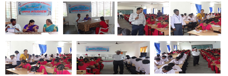 CAMPUS INTERVIEW – 12.3.15 The Placement Cell was Conducted the campus interview on 12.3.15 with Vidhya mandir CBSC School Managed by Ram co Cements, Ariyalur. The Campus interview was conducted by S.Mathukrishnan Administrator – Education, with written test and Oral Interview, 130 Students teachers were participated and selected candidates got the appointment order.