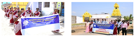 DRAMA AND ARTS IN EDUCATION Drama and Arts in Education should engage the student - teachers to nurture and build their sensitivities through drama based their sensitivities through drama based on experience, emotions and interpretation. Our student-teachers performed the programme for transformational action, experience and stage different kinds of drama and contemporary traditions relating to pedagogy to day-to-day problems of students in their life. TECHNOLOGY IN HAND –PREPARATION FO E-CONTENT Education is no longer acquisition of bookish language. It is considered to be a lifelong process that keeps a going from the technology oriented.Our student-teachers delivered how to prepare the teaching material through e-content,e-booklet for the selected school subjectand to create for individual growth and prepare the year content through Power Point Presentation. LESSON PLAN WRITING AND ACHIEVEMENT TEST CONSTRUCTION-15.12.16 As per University norms, we had been conducted the lesson plan writing and achievement test construction on 15.12.16. Mr.R.Anandhan delivered speech about lesson plan writing and achievement test construction and explained the methods of test construction and lesson plan writing. Students learned Self- awareness, Empathy, Critical thinking, Creative thinking, Decision making, problem solving, Effective communication. It has used educational carrier for student teacher. NATIONAL MATHEMATICS DAY – 22.12.16 National Mathematics Day was celebrated on 22.12.16 in our College Auditorium. Dr.K.Santhakumarai, Principal, presided Over the function. Ms.G.Thangam,Asst.Professor welcome the gathering and introduced the Chief Guest by Mr.R.Anand,Asst.Professor.The Chief Guest Mr.K.Murali,Head of the Department,Oxford Engineering College,Trichy,delivered a valuable speech about the the Mathematician Sri.Srinivasa Ramanujam He shared the technique related to Maths and insisted the easy steps to do Maths and also he asked the logic questions to the student-teachers and he appreciated them. Finally, Mrs.K.Bakkiyalakshmi,Asst.Professor, delivered the vote of thanks. INNOVATIVE SCHOOL VISIT - 23.12.16 There's no shortage of innovation happening in schools today. We see it every time we visit a new school - whether it's in my own backyard or on the other side of the world. But while all of that innovation is encouraging, it tends to happen in isolation - in a single classroom behind closed doors or in a few schools or districts. In order for meaningful changes to take hold in education, we must find a way to scale this good work. So,we are taking an important step toward making that happen. Innovative Schools are getting ready to greet key decision-makers from around the world, who will visit their schools to experience first-hand how these highly recognized schools have successfully implemented technology to support world-class learning environments. Our student teachers visited Gowthama buthar dem and deaf high school at Perambalur on 21.12.16 to 23.12.16. The main objective of early intervention centres is to identify infants and young children with Hearing Impairment/Mental Retardation/Visual Impairment / Cerebral Palsy/ Autism/ Multiple Disabilities and to provide early intervention services to address the disability with medical and rehabilitation services. It also provides required training to parents and families of such children for social adjustment and to facilitate the maximum development of the children with disabilities. BOOK FAIR – 27.2.2017 Book fair conducted from January 27 to February 05, 2017 every year, our students participated in book fair. The book fair conducted as per direction by district collector in perambalur, our students performed cultural programme and bought useful books from the book fair. CITIZENSHIPTRAINING CAMP - 22.03.2017 The citizenship training camp contacted on 22.03.2017 in our college campus. The inaugural function started at 10’o clock. The principal welcomed the chief gust. Then the founder –chairman delivered the presidential address. Rev. Dr.S.Mariyadhas, vice principal of St.Joseph’s college in Trichy, he delivered special key note address to the pupil, then the student’s representative delivered the vote of thanks. Second Session – 22.03.2017 The second session was contained by Dr.Rasathi, the principal of Dhanalakshmisrinivasan nursing college in perambalur. She instruct on “health boy is wealth” . It is followed by student’s cultural programme. MEDICAL CAMP – 23.03.17 Medical Camp was conducted by our college in pommanabody, Perambalur District on 23-03-17 with the aid of Dhanalakshmi Srinivasan Medical College, Siruvachur, Perambalur. Pupil got great opportunity to do good manners to the society. People were specified better treatment and they were given counseling. Our hospital’s doctors have follow-up with them. CLEANING ACTIVITIES IN CHETTIKULAM SIVA TEMPLE The student teachers are should bee know the environment around us how to keep our surrounding clean. It is a part and part of their practice so our student teachers accomplice the Cleaning activities on Murugan Temple in Chettikulam. CLEANING ACTIVITIES IN POMMANAPADY The student teachers are should bee know the environment around us how to keep our surrounding clean. It is a part and part of their practice so our student teachers accomplice the Cleaning activities in Pommanapady village VISIT TO HUMAN UPLIFT HOME (AIDS affected children) AT SENJERI Our Student teachers have visited the human uplift home and they donate Stationary Items, snacks, biscuits to the children’s at the home in Senjeri. VISIT ON SCULPTURE CAMP The student teachers went to visited in sculpture site and how does the art of make sculpture. Our student teachers interact with sculptor and know about technical and what are the uses of in our human life. EDUCATION AWARENESS CAMP Our students teachers have been met uneducated people and know about them, then our student teach educati