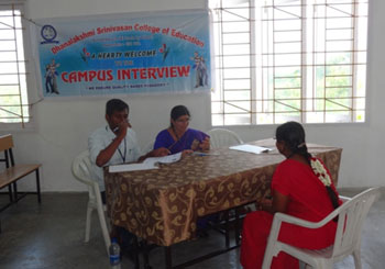 The Placement Cell was Conducted the campus interview on 12.3.15 with Vidhya mandir CBSC School Managed by Ram co Cements, Ariyalur. The Campus interview was conducted by S.Mathukrishnan Administrator – Education, with written test and Oral Interview, 130 Students teachers were participated and selected candidates got the appointment order.
